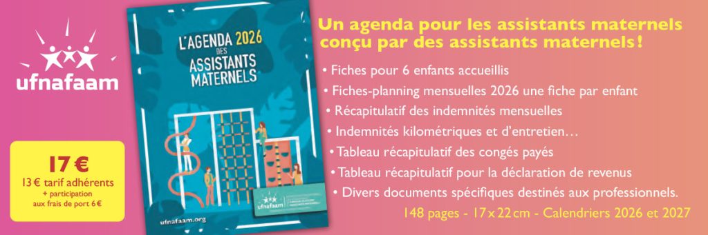 Ce document est une aide à la professionnalisation pour les animateurs de RPE, les formateurs et les services de PMI. Sachez que l’Ufnafaam est un organisme de formation et peut animer des formations et des conférences auprès des assistantes maternelles.